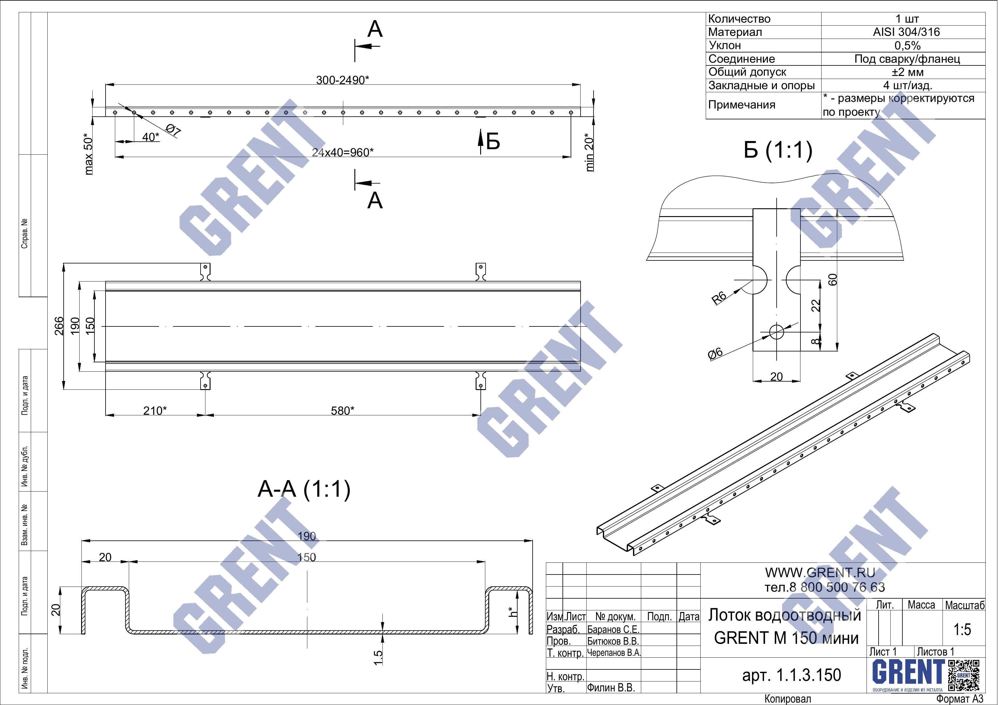 Гидравлическое сечение/ рабочая ширина лотка, мм