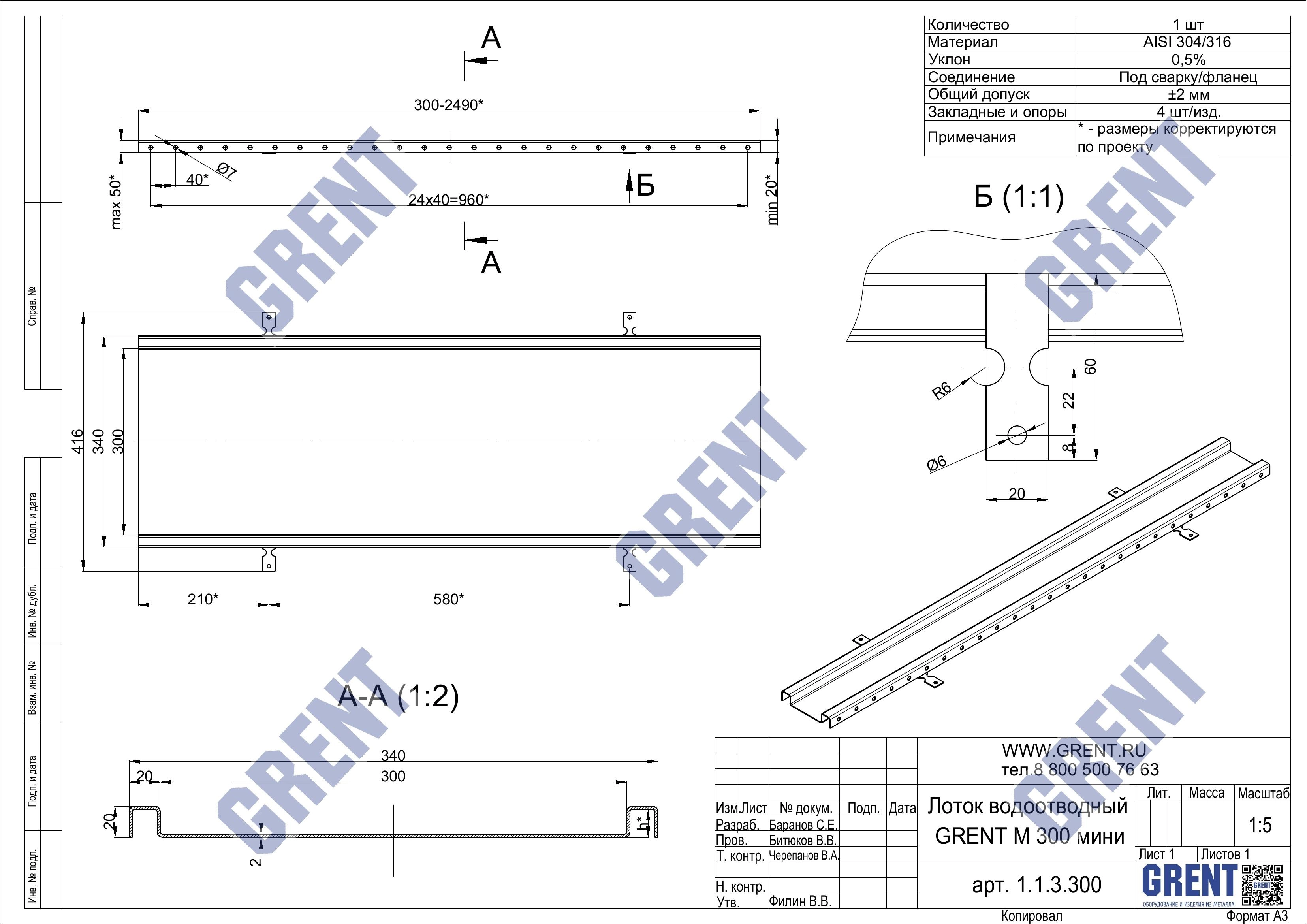Гидравлическое сечение/ рабочая ширина лотка, мм